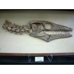 モササウルスは体長4~5メートル以上もあり、蛇のように長い体をくねらせて泳いでいました。頭部には鋭い歯を持つ大きな口があり、アンモナイトやベレムナイト(矢石)を食べていました。モササウルスの歯形がついたアンモナイトがいくつも発見されています。